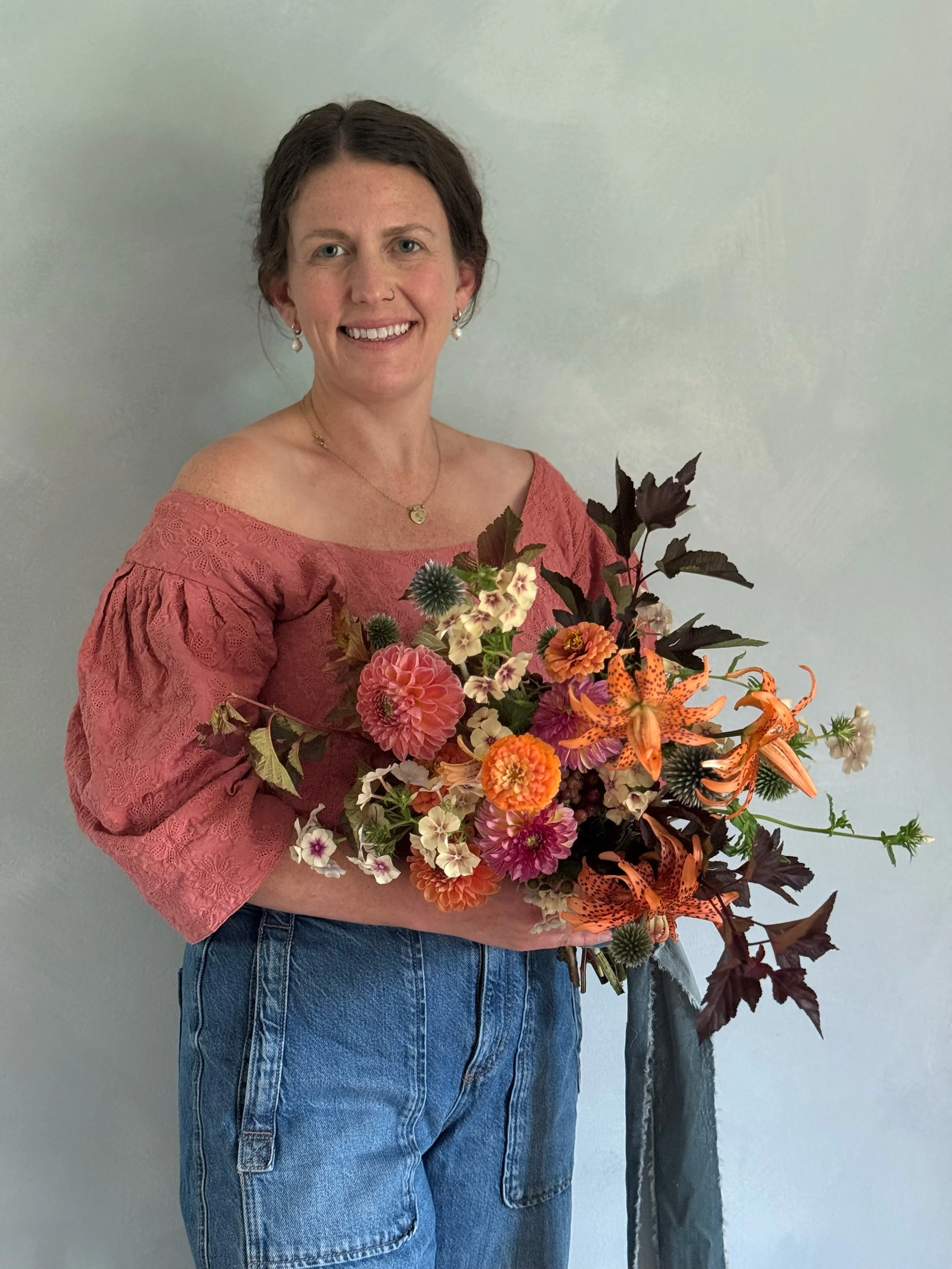 She is so grateful to work with flowers each day and would love to work with you to create something beautiful. Whether you’re planning a wedding, hosting an event, or looking to bring fresh flowers into your home, I create custom floral designs that feel artful, organic, and meaningful.